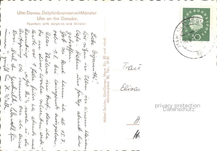 72369791 alte Postkarte Ulm Donau Delphinbrunnen mit Muenster postalisch gelaufen Erhaltung siehe scans KatCode: 11110008421000