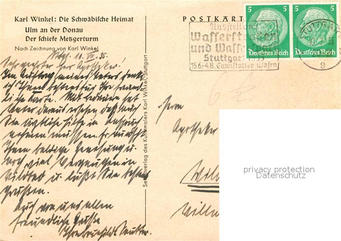 43002855 alte Postkarte Ulm Donau Der schiefe Metzgerturm Zeichnung Karl Winkel Kuenstlerkarte Serie Die Schwaebische Heimat postalisch gelaufen Erhaltung siehe scans [FriedD77] KatCode: 11110008421000