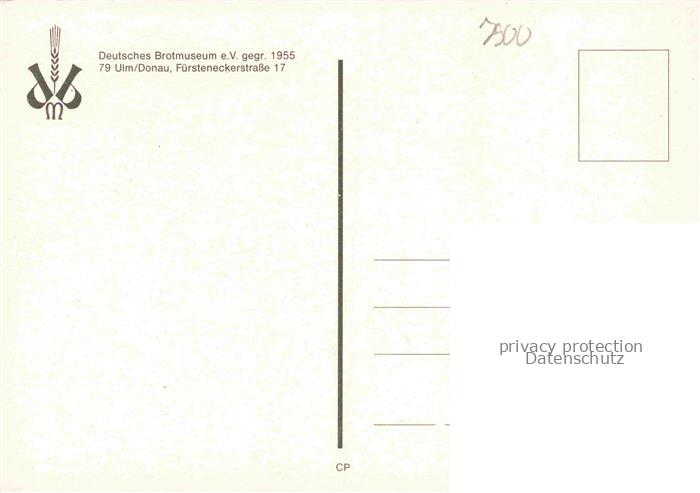 74050059 ULM Donau Deutsches Brotmuseum postalisch nicht gelaufen Erhaltung siehe scans [WerneD78] KatCode: 11110008421000
