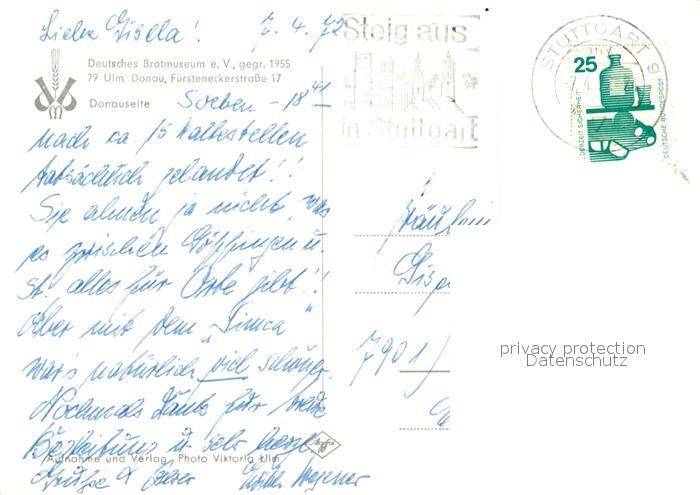 73283012 alte Postkarte Ulm Donau Deutsches Brotmuseum postalisch gelaufen Erhaltung siehe scans [LiesaD40] KatCode: 11110008421000