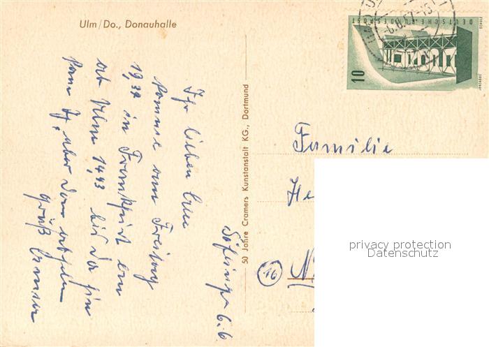 73655425 alte Postkarte Ulm Donau Donauhalle postalisch gelaufen Erhaltung siehe scans [WerneD78] KatCode: 11110008421000