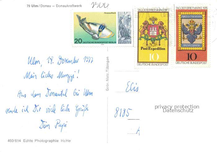 74050064 alte Postkarte ULM Donau Donaukraftwerke postalisch gelaufen Erhaltung siehe scans [WerneD78] KatCode: 11110008421000