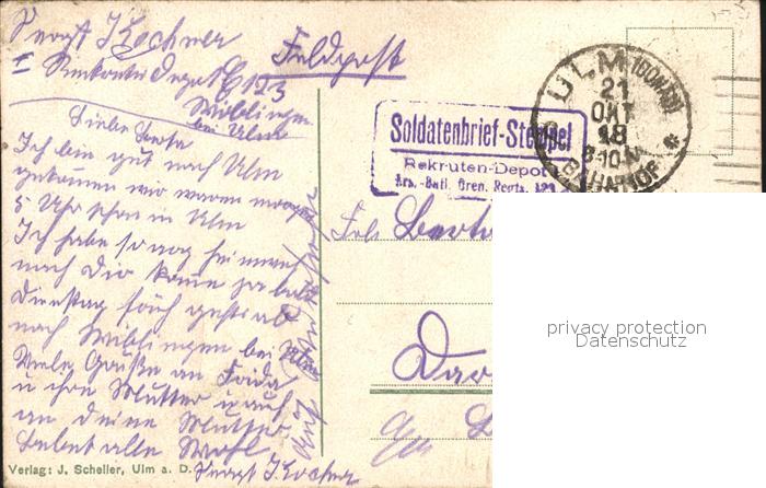 31727402 alte Postkarte Ulm Donau Einfr. postalisch gelaufen Feldpost Erhaltung siehe scans KatCode: 11110008421000