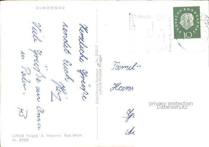 72208705 alte Postkarte Ulm Donau Fliegeraufnahme postalisch gelaufen Erhaltung siehe scans KatCode: 11110008421000