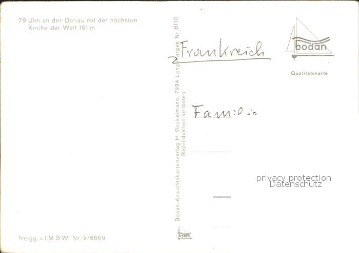 72323052 Ulm Donau Fliegeraufnahme Dom postalisch nicht gelaufen Erhaltung siehe scans KatCode: 11110008421000