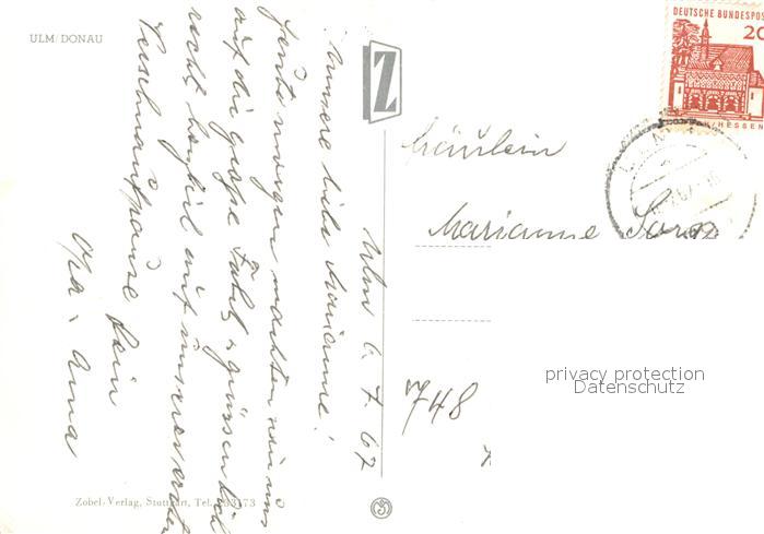 72947099 alte Postkarte Ulm Donau Fliegeraufnahme mit Dom und Donau postalisch gelaufen Erhaltung siehe scans [LiesaD40] KatCode: 11110008421000
