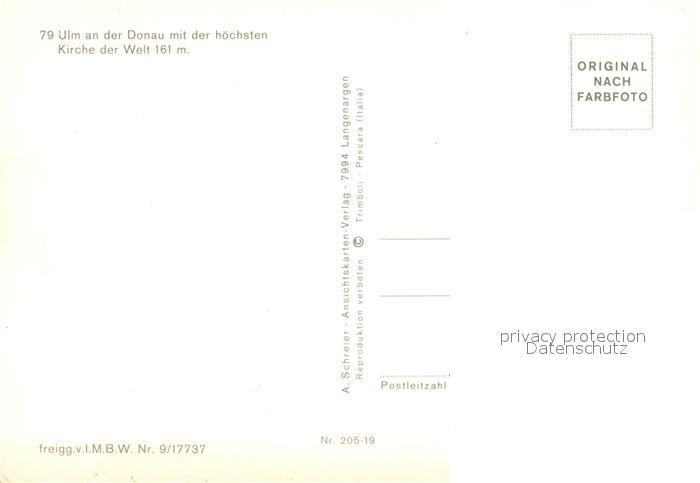 72991281 Ulm Donau Fliegeraufnahme mit Ulmer Muenster postalisch nicht gelaufen Erhaltung siehe scans [WerneD78] KatCode: 11110008421000