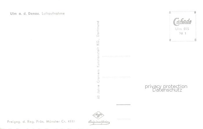 73764463 Ulm Donau Fliegeraufnahme mit Ulmer Muenster postalisch nicht gelaufen Erhaltung siehe scans [WerneD78] KatCode: 11110008421000