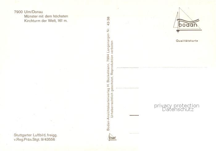 73169187 Ulm Donau Fliegeraufnahme Muenster postalisch nicht gelaufen Erhaltung siehe scans [KathaD81] KatCode: 11110008421000