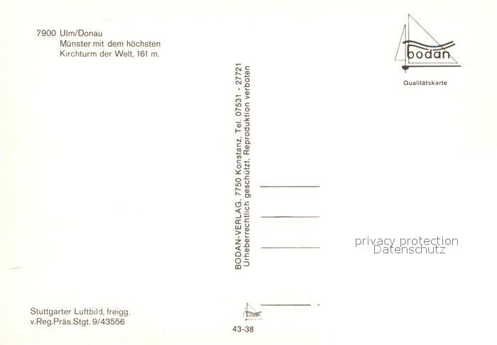 72946726 Ulm Donau Fliegeraufnahme Muenster hoechster Kirchturm Welt postalisch nicht gelaufen Erhaltung siehe scans [KathaD81] KatCode: 11110008421000