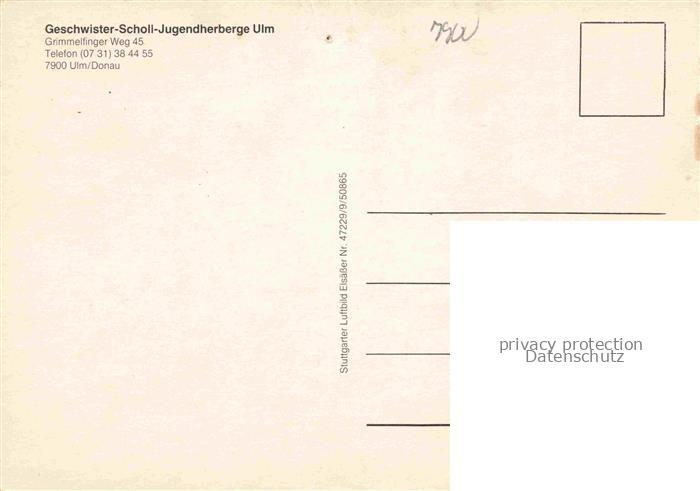 74050062 ULM Donau Geschwister Scholl Jugendherberge postalisch nicht gelaufen Fliegeraufnahme Erhaltung siehe scans [WerneD78] KatCode: 11110008421000