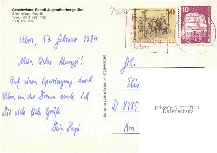 74050066 alte Postkarte ULM Donau Geschwister Scholl Jugendherberge postalisch gelaufen Fliegeraufnahme Erhaltung siehe scans [WerneD78] KatCode: 11110008421000