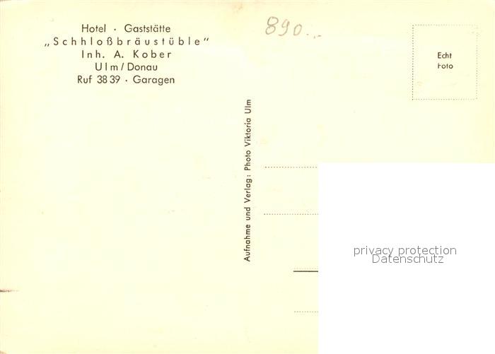 33044091 Ulm Donau Hotel Schlossbraeustueble postalisch nicht gelaufen Erhaltung siehe scans [KathaD81] KatCode: 11110008421000