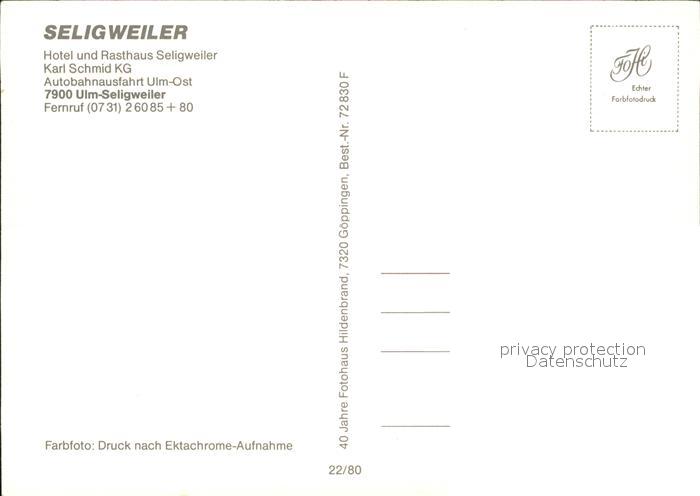 71913316 Ulm Donau Hotel und Rasthaus Seligweiler Fliegeraufnahme postalisch nicht gelaufen Erhaltung siehe scans KatCode: 11110008421000