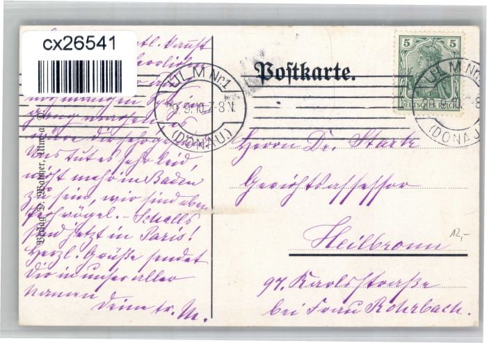 30838412 alte Postkarte Ulm Donau Kuenstler Kimmich postalisch gelaufen KatCode: 11110008421000