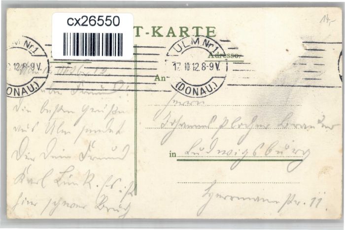 30838403 alte Postkarte Ulm Donau Metzgerturm Rathaus Bruecke Muenster x postalisch gelaufen KatCode: 11110008421000