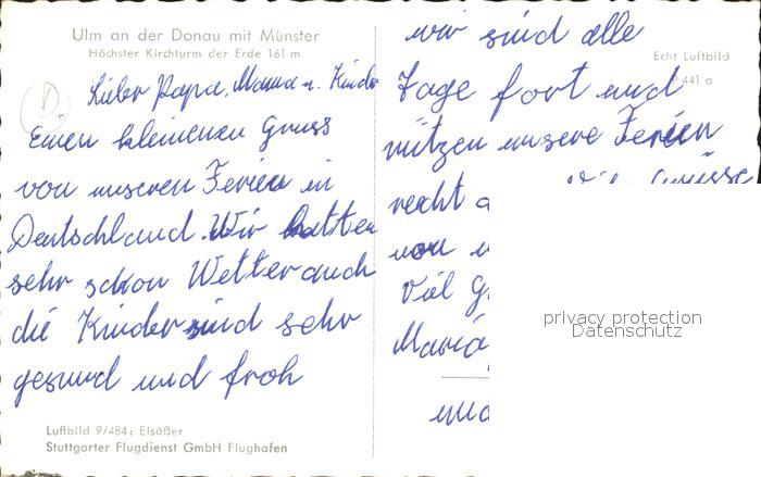 72163941 Ulm Donau mit Muenster Fliegeraufnahme postalisch nicht gelaufen Erhaltung siehe scans KatCode: 11110008421000