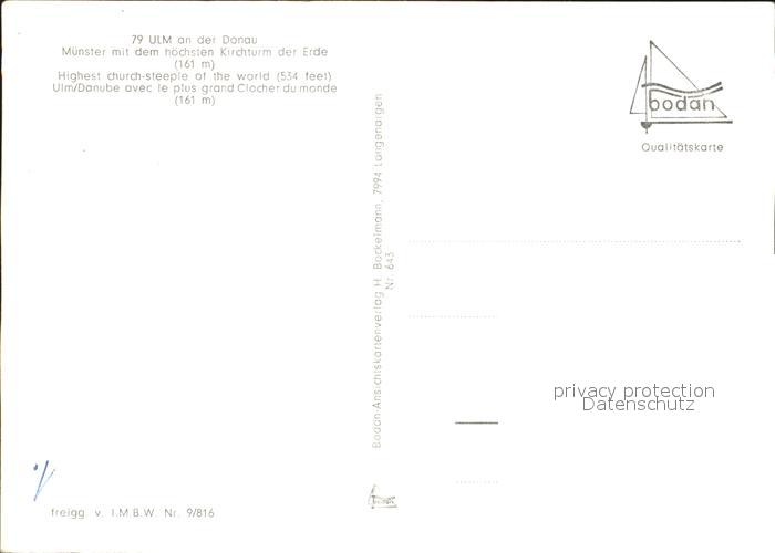 72327210 Ulm Donau Muenster postalisch nicht gelaufen Erhaltung siehe scans KatCode: 11110008421000