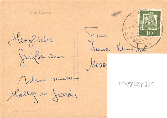73079282 alte Postkarte Ulm Donau Muenster Fliegeraufnahme postalisch gelaufen Erhaltung siehe scans [KathaD81] KatCode: 11110008421000