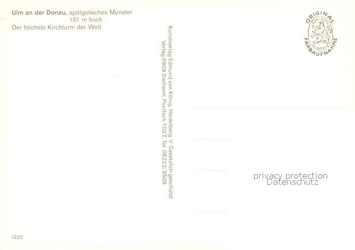 73124283 Ulm Donau Muenster Hoechster Kirchturm der Welt postalisch nicht gelaufen Erhaltung siehe scans [KathaD81] KatCode: 11110008421000