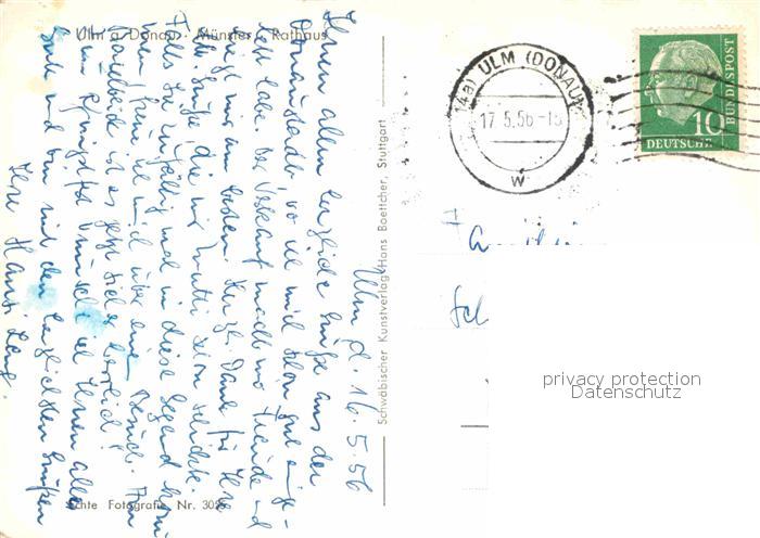 72834935 alte Postkarte Ulm Donau Muenster Rathaus postalisch gelaufen Erhaltung siehe scans [PaolaD17] KatCode: 11110008421000