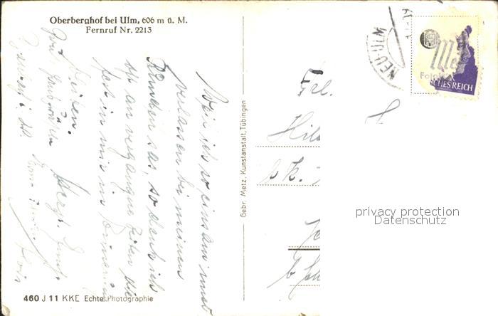 71911336 alte Postkarte Ulm Donau Oberberghof postalisch gelaufen Erhaltung siehe scans KatCode: 11110008421000