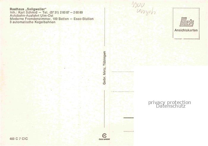 74035457 ULM Donau Rasthaus Esso Station Seligweiler Fliegeraufnahme postalisch nicht gelaufen Erhaltung siehe scans [WerneD78] KatCode: 11110008421000