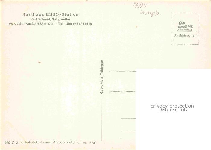 74035456 ULM Donau Rasthaus Esso Station Seligweiler Fliegeraufnahme postalisch nicht gelaufen Erhaltung siehe scans [WerneD78] KatCode: 11110008421000