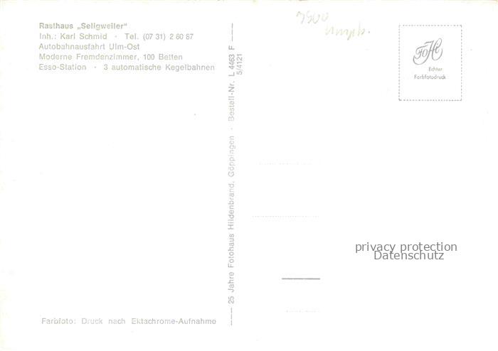 74035455 ULM Donau Rasthaus Esso Station Seligweiler Fliegeraufnahme postalisch nicht gelaufen Erhaltung siehe scans [WerneD78] KatCode: 11110008421000