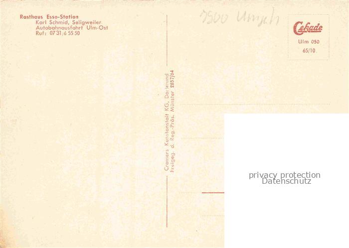 74035452 ULM Donau Rasthaus Esso Station Seligweiler Fliegeraufnahme postalisch nicht gelaufen Erhaltung siehe scans [WerneD78] KatCode: 11110008421000