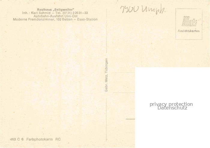 74035451 ULM Donau Rasthaus Seligweiler Fliegeraufnahme postalisch nicht gelaufen Erhaltung siehe scans [WerneD78] KatCode: 11110008421000