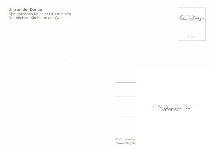 72780129 Ulm Donau Spaetgotisches Muenster hoechste Kirchturm der Welt Fliegeraufnahme postalisch nicht gelaufen Erhaltung siehe scans [FriedD77] KatCode: 11110008421000