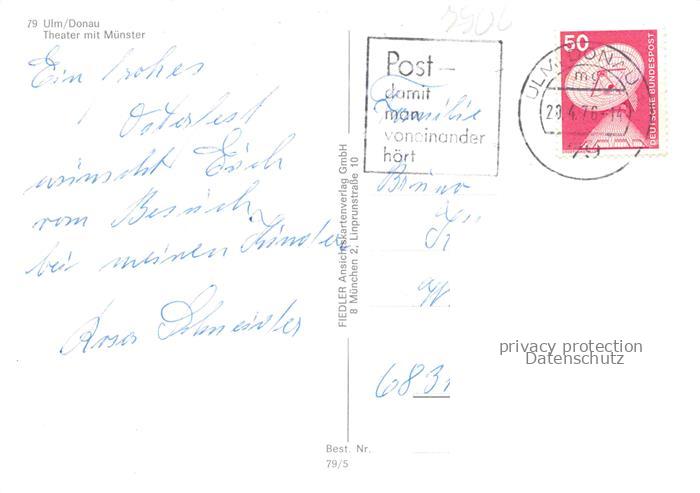 74049872 alte Postkarte ULM Donau Theater mit Muenster postalisch gelaufen Erhaltung siehe scans [FriedD77] KatCode: 11110008421000