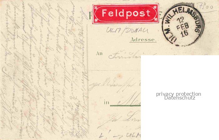 74058988 alte Postkarte ULM Donau Wilhelmsburg Kaserne Litho Feldpost postalisch gelaufen Erhaltung siehe scans [FriedD77] KatCode: 11110008421000