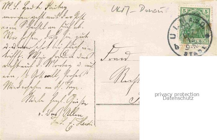 74059112 alte Postkarte ULM Donau Wohnhaus im Zentrum postalisch gelaufen Erhaltung siehe scans [FriedD77] KatCode: 11110008421000