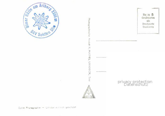 72756124 Ulmer Huette am Ariberg postalisch nicht gelaufen Erhaltung siehe scans [LiesaD40] KatCode: 11390334070621