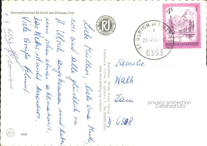 72430258 alte Postkarte Ulrich Pillersee St Sommerfrische Kirche postalisch gelaufen Erhaltung siehe scans KatCode: 11390335070417