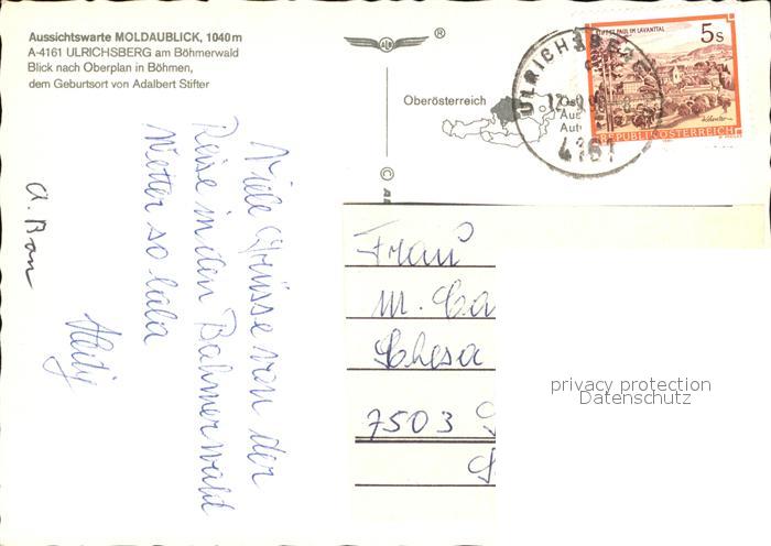 72532454 alte Postkarte Ulrichsberg Oberoesterreich Aussichtswarte Moldaublick postalisch gelaufen Erhaltung siehe scans [AndreD76 kt113box] KatCode: 11390313041342