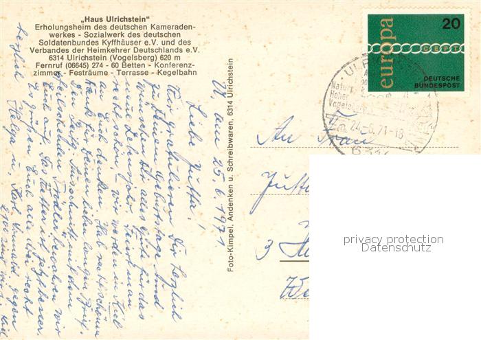 73664015 alte Postkarte Ulrichstein Erholungsheim Ulrichstein postalisch gelaufen Erhaltung siehe scans [LiesaD40] KatCode: 11110006535018