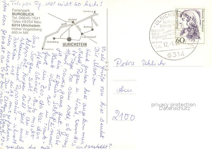 73746104 alte Postkarte Ulrichstein Ferienpark Burgblick Schlittenhundegespann postalisch gelaufen Erhaltung siehe scans [WerneD78] KatCode: 11110006535018