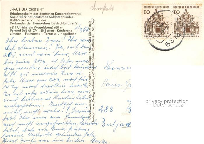 73720541 alte Postkarte Ulrichstein Haus Ulrichstein Erholungsheim Soldatenbund Kyffhaeuser e.V. Verband der Heimkehrer Deutschlands e.V. postalisch gelaufen Erhaltung siehe scans [FriedD77] KatCode: 11110006535018