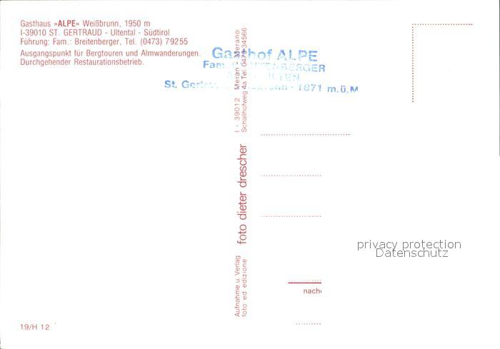 Ultental Gasthaus Alpe postalisch nicht gelaufen Erhaltung siehe scans
