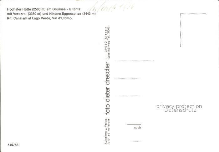 Ultental Hoechster Huette postalisch nicht gelaufen Erhaltung siehe scans