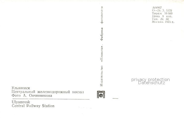 13659079 Ulyanovsk Central Railway Station postalisch nicht gelaufen Erhaltung siehe scans [WerneD78] Wern Katcode 11440