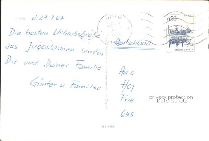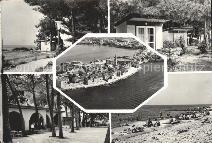 old postcard Umag Umago Istrien Bungalowsiedlung Strand Fliegeraufnahme postalisch gelaufen Erhaltung siehe scans