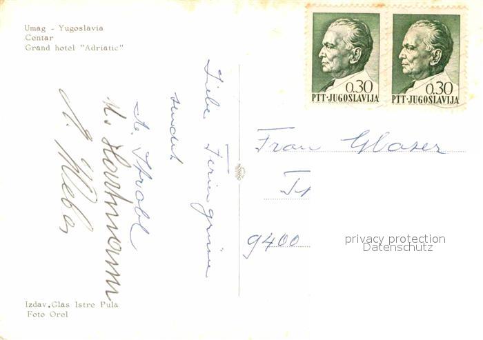 old postcard Umag Umago Istrien Centat Grand-Hotel-Adriatic postalisch gelaufen Erhaltung siehe scans [LiesaD40]