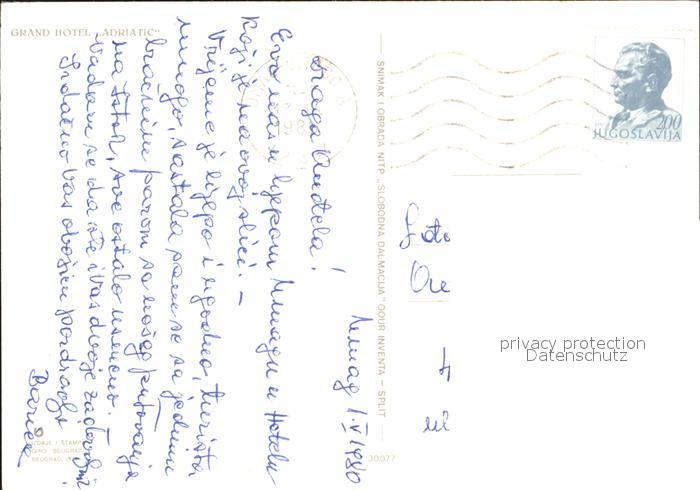 old postcard Umag Umago Istrien Grand Hotel Adriatic Strand postalisch gelaufen Erhaltung siehe scans