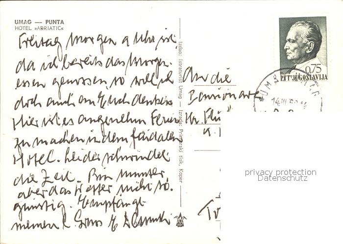 old postcard Umag Umago Istrien Hotel Adratic postalisch gelaufen Erhaltung siehe scans