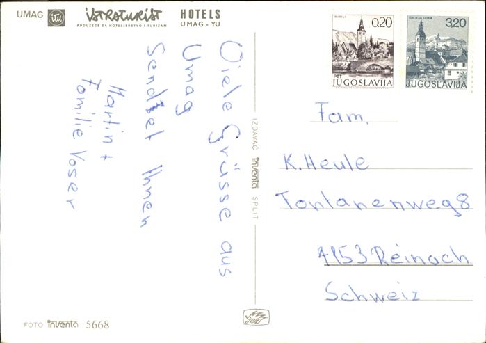 old postcard Umag Umago Istrien Istroturist Hotel Strand Fliegeraufnahme postalisch gelaufen Erhaltung siehe scans