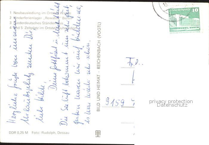 72341912 alte Postkarte Ummanz Neubausiedlung Waase Kinderferienlager Staenderhaus Zeltplatz Suhrendorf postalisch gelaufen Erhaltung siehe scans KatCode: 11110013061042